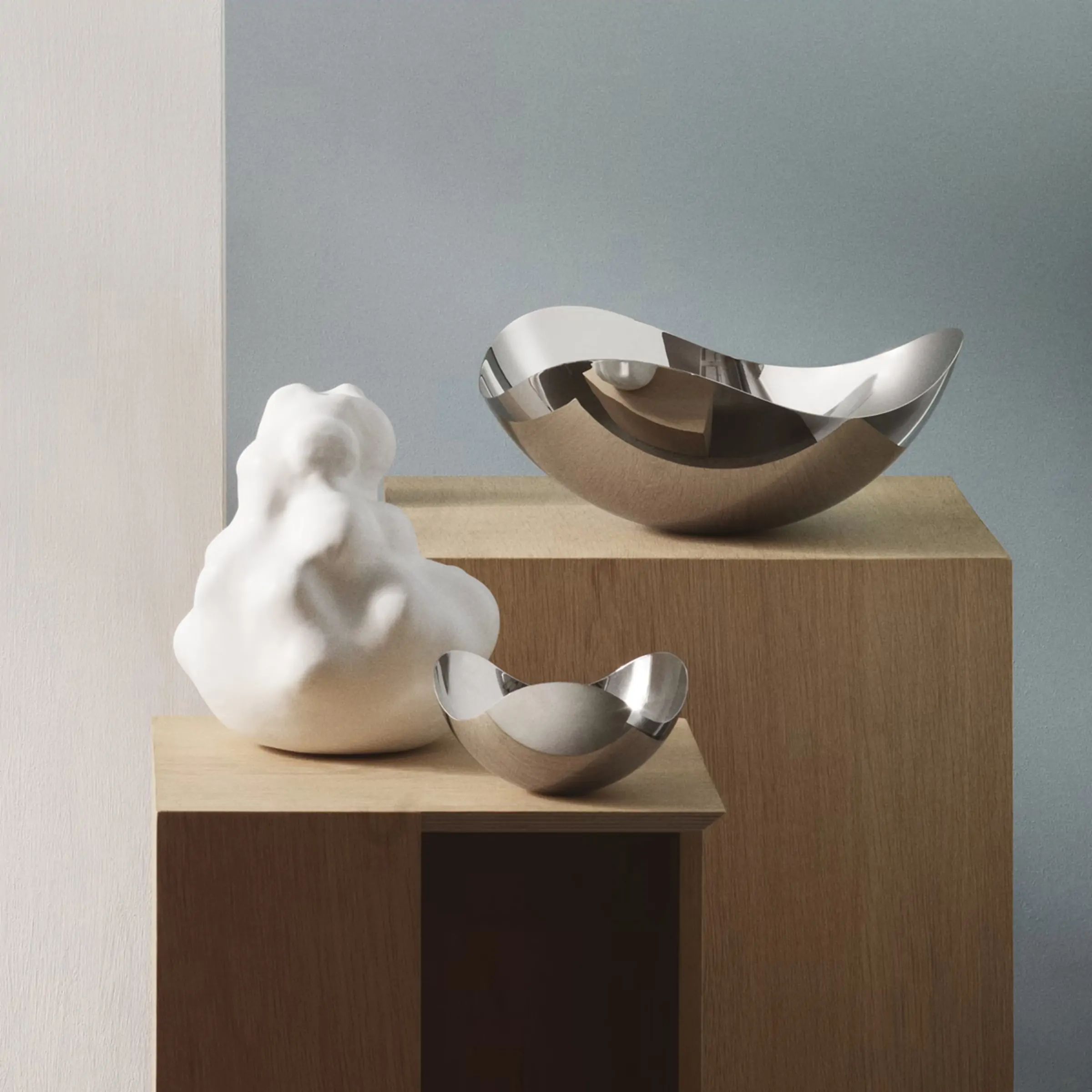Çiçek yapraklarının ve tomurcukların güzelliğinden ilham alan Helle Damkjær’ın organik şekilli meyve kaseleri, vazoları ve mumlukları çağdaş ve heykelsel bir niteliğe sahiptir ve aynı zamanda eve baharın neşesini taşır.