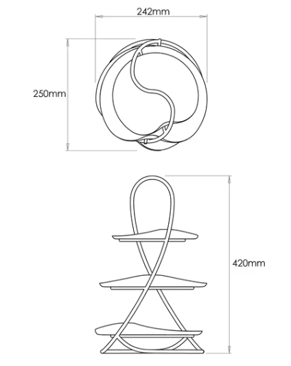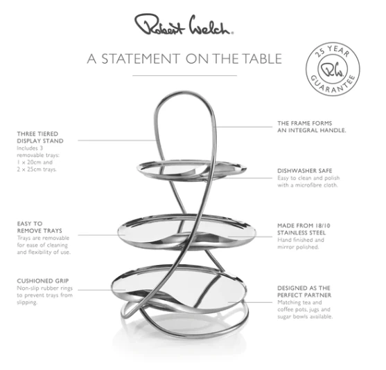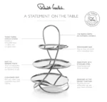 Kıvrımlı Drift serisinden 3 katlı pasta standı. Tüm Drift çay ürünleri, ayna cilalı 18/10 paslanmaz çelikten yapılmıştır. Drift serisinin bir parçası olan koleksiyondaki tüm parçalar, zarif ve kullanımlarını zahmetsiz hale getiren klasik orantılıdır.