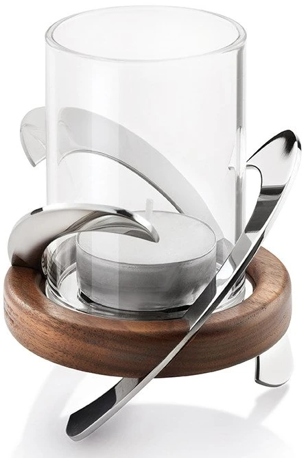 Eşsiz spiral kıvrımlara sahip Helix tealight mumluk ayna cilalı 18/10 paslanmaz çelikten, ceviz tabanlı ve ısıya dayanıklı borosilikat camdan yapılmıştır. Helix tealight mumluklar ayrı ayrı kutulanır.