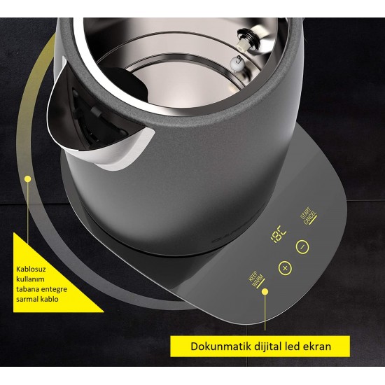 Daha sonra istenirse suyu 3 saate kadar sıcak tutar. 360 derecelik taban, yalıtımlı gövde ve ayrıca kablosuz su ısıtıcısı, kullanımı hoş bir şekilde kolaylaştırır.