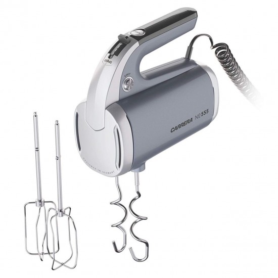 Sessiz ve hafif el mikseri ile her hamur yapabilirsiniz. İster ekmek ve kek hamuru deneyin, ister kendi pizza hamurunuzu mükemmelleştirin veya sadece kremşanti yapmak isteyin. CARRERA el mikseriniz sizi asla yarı yolda bırakmaz. Paslanmaz çelik çırpıcı ve hamur kancası ile tüm işi o yapar ve siz yaratıcı kısmı üstlenirsiniz. El mikseri, arka taraftaki silikon yüzey üzerinde güvenli bir şekilde durur. Spiral kablo güvenli çalışmayı ve kolay saklamayı kolaylaştırır. Karıştırma teli ve yoğurma kancası, paslanmaz çelik yapılmıştır bulaşık makinesinde yıkanabilir.