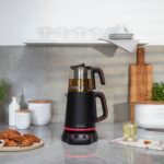 2 litre su ısıtıcısı ve 1 litre cam demlik kapasitesi, büyük aileler veya misafir ağırlamak için yeterli hacim sunar.