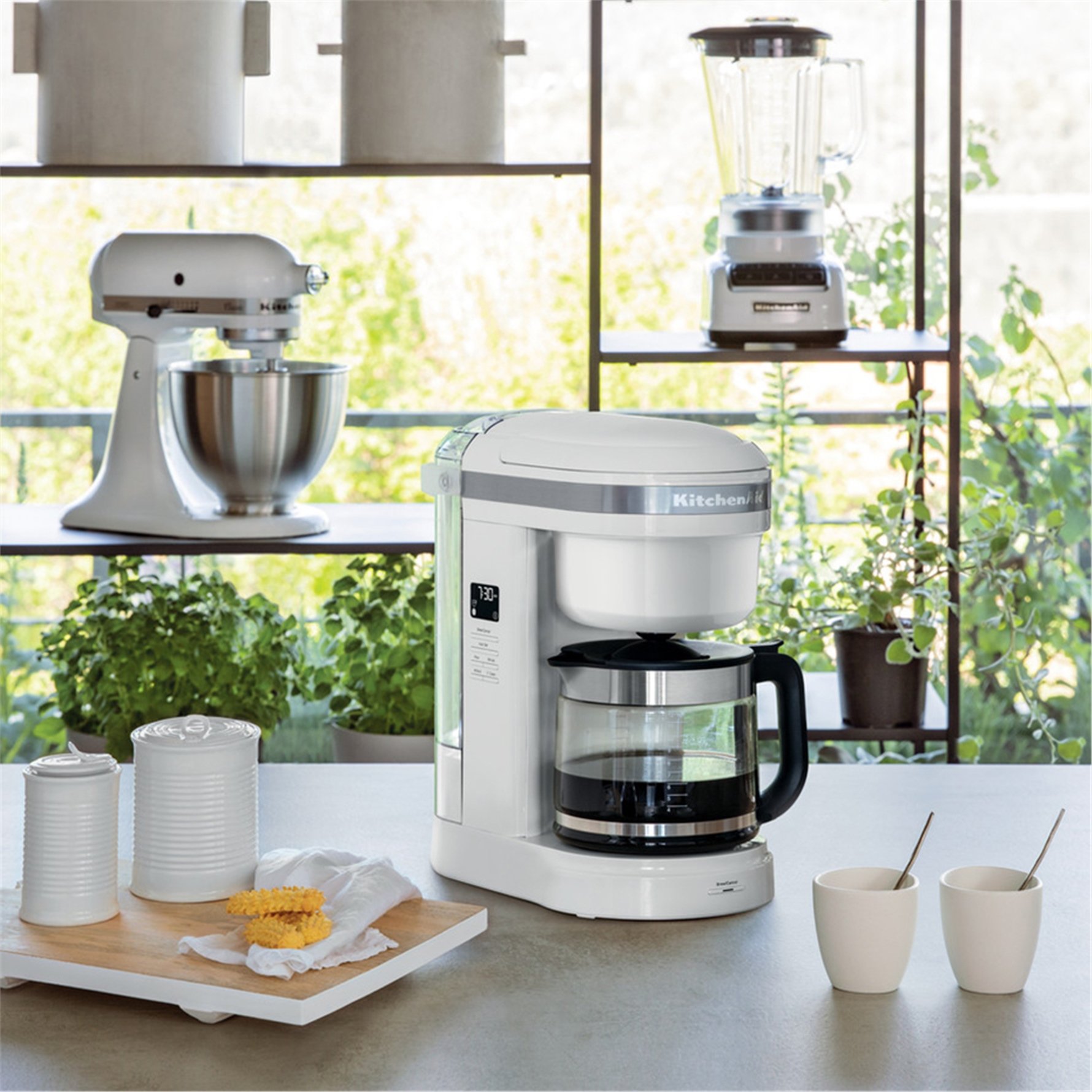 Bu mükemmel cihaza sahip olun. Modern ve zarif estetiğiyle mutfağınıza yepyeni bir hava katacak. Ayrıca, cam karafın dökme ağzı tasarımı, kahvenizi damlama ve dökülme riski olmadan her boyut ve şekildeki fincana rahatça doldurmanızı sağlar.