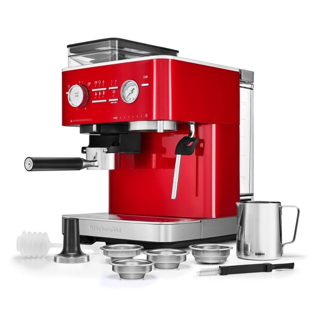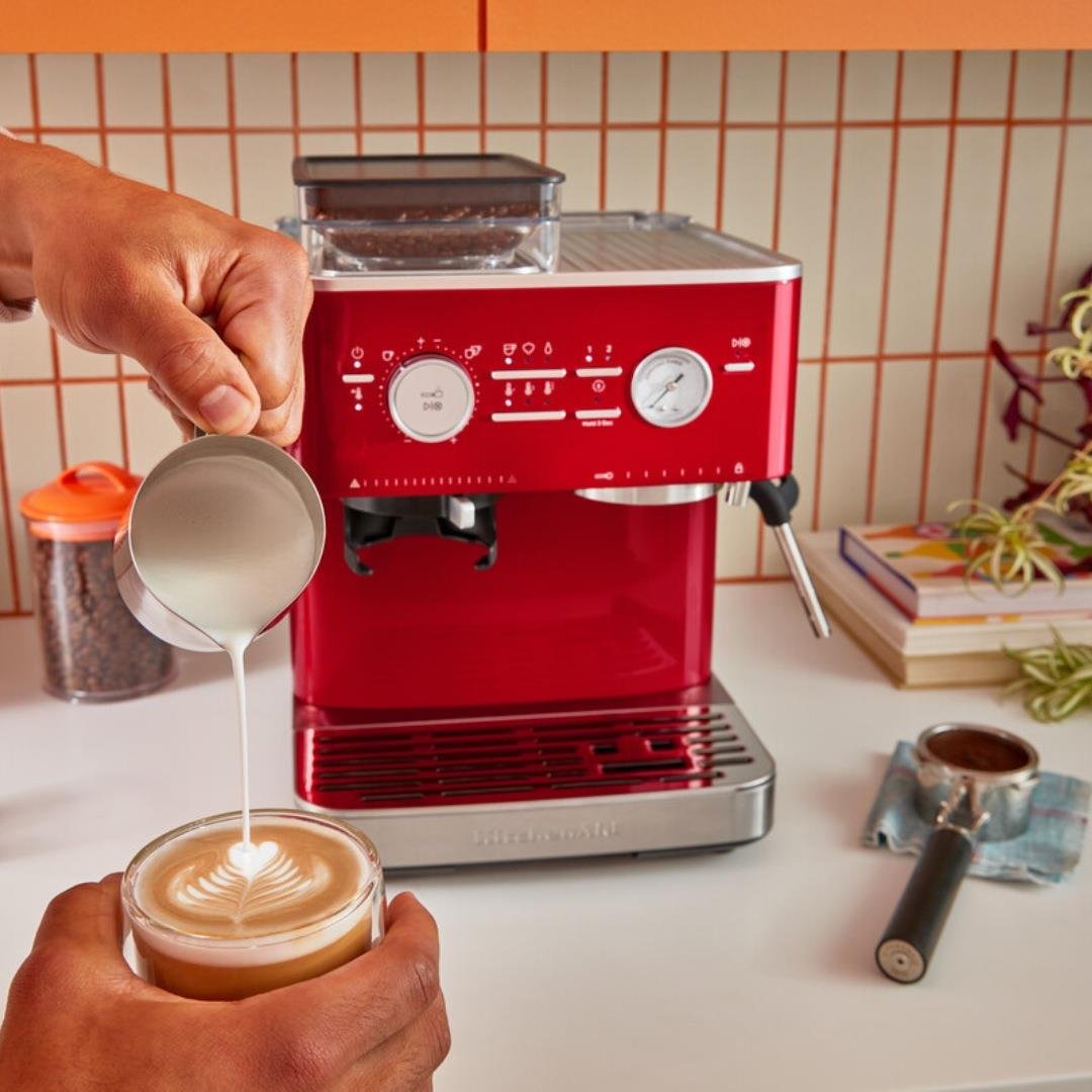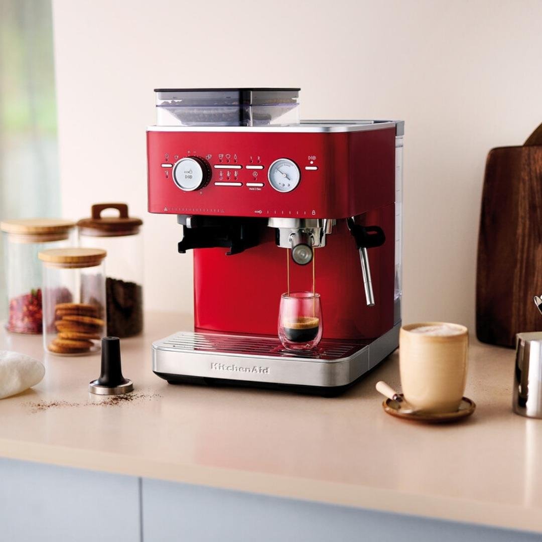 KitchenAid yarı otomatik espresso makinesi, barista tarzı kahve deneyimini evinize getiriyor. Yerleşik konik burr öğütücü, akıllı dozaj teknolojisi, 15-bar pompa ve çok açılı buhar çubuğuyla espresso, americano, cappuccino gibi içecekleri kolayca hazırlayın.