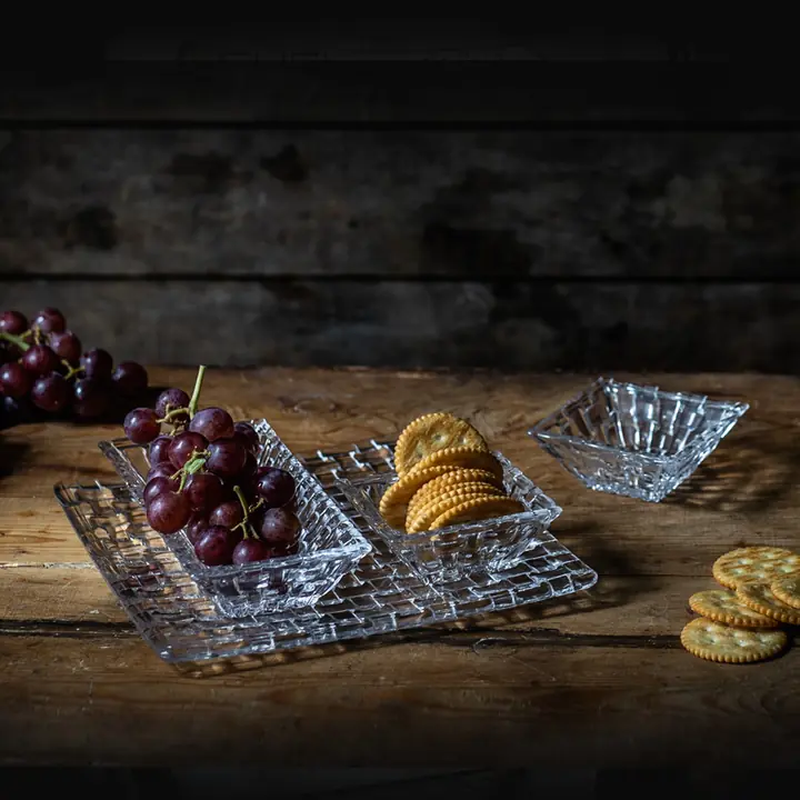 Bossa Nova serisi, adını verdiği dansla aynı havalı duyarlılığa sahip bar ve sofra takımları sunar. Koleksiyon, parmak uçlarını baştan çıkaran dokulu sepet örgüsü tasarımıyla şeffaf cam koleksiyonuna ilgi katıyor.