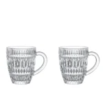 Modern arabesk stilinden ilham alan kesimli kristal tasarımı ile hem klasik hem çağdaş zevklere hitap eder. Yüksek kaliteli kristal camdan üretilmiş olup dayanıklıdır, bulaşık makinesinde yıkanabilir. Pratik kulp tasarımı konfor sunarken, estetik dokunuşuyla sofralarınıza değer katar.