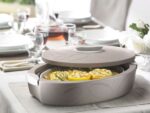 Fırına ve mikrodalgaya girebilen seramik iç kap.