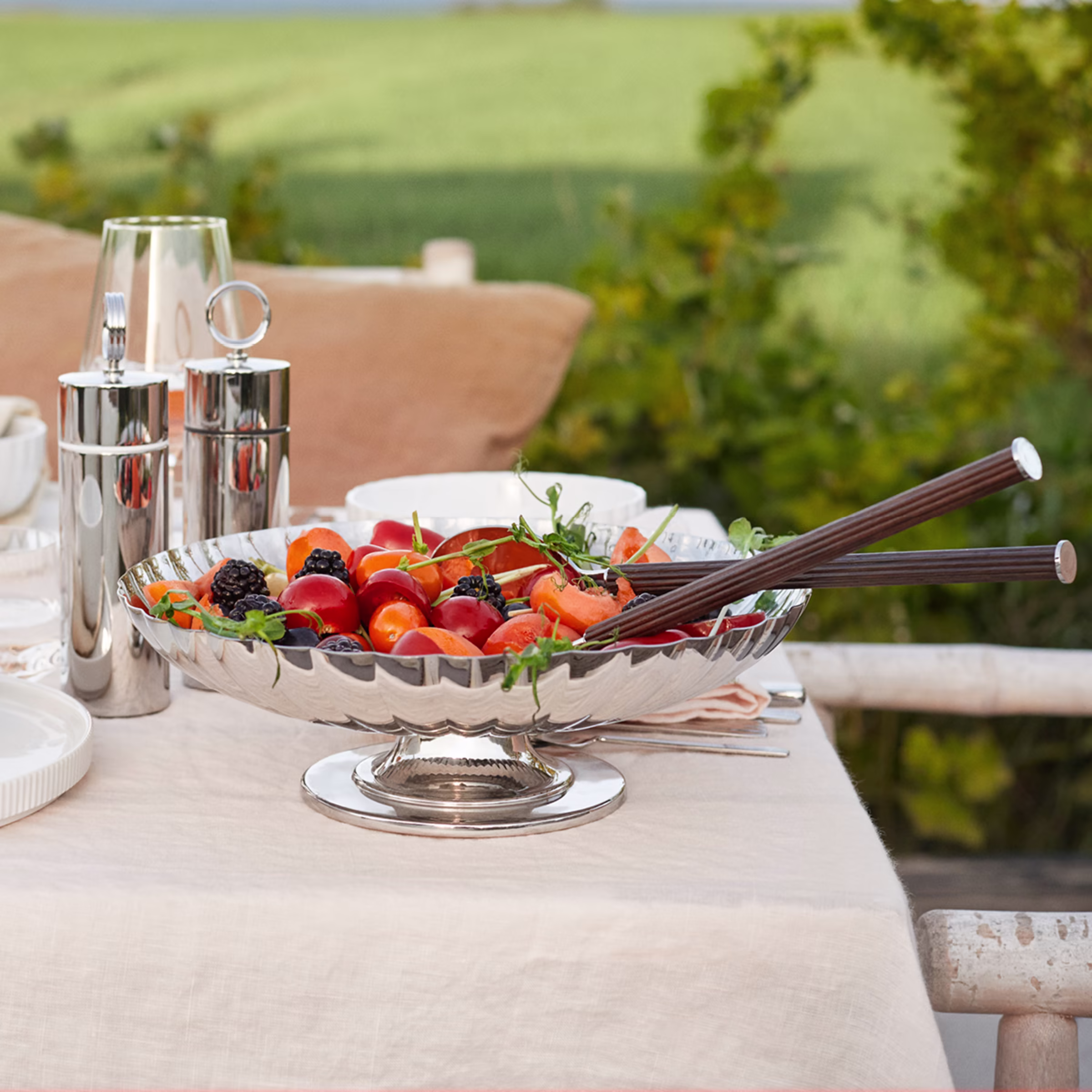 Salatanızı şık bir şekilde servis edin! Art Deco’dan ilham alan oluklarla ustalıkla oyulmuş füme meşe saplı, son derece cilalı paslanmaz çelikten yapılmış bu güzel tasarımlı servis kaşıkları, yemek zamanlarına sofistike bir lüks dokunuşu katıyor. Biçim ve işlevi dengeleyerek, seçici bir ev sahibi veya hostes için mükemmel bir hediye olurlar.