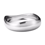 Bu büyük, çarpıcı heykelsi kasenin yumuşak akıcı çizgileri, onu masa düzeninin mükemmel merkezi haline getiriyor. Salata, sebze ve hatta belki çiçeklerle dolu ayna cilalı paslanmaz çelik yüzey, aynı zamanda oturduğu odayı geri yansıtarak ekstra bir dekorasyon unsuru ekliyor. Tek başına duran veya aynı koleksiyondaki diğer kaselerle gruplandırılmış olan bu çanak, her türlü iç dekorasyon şemasına çağdaş bir unsur katıyor.