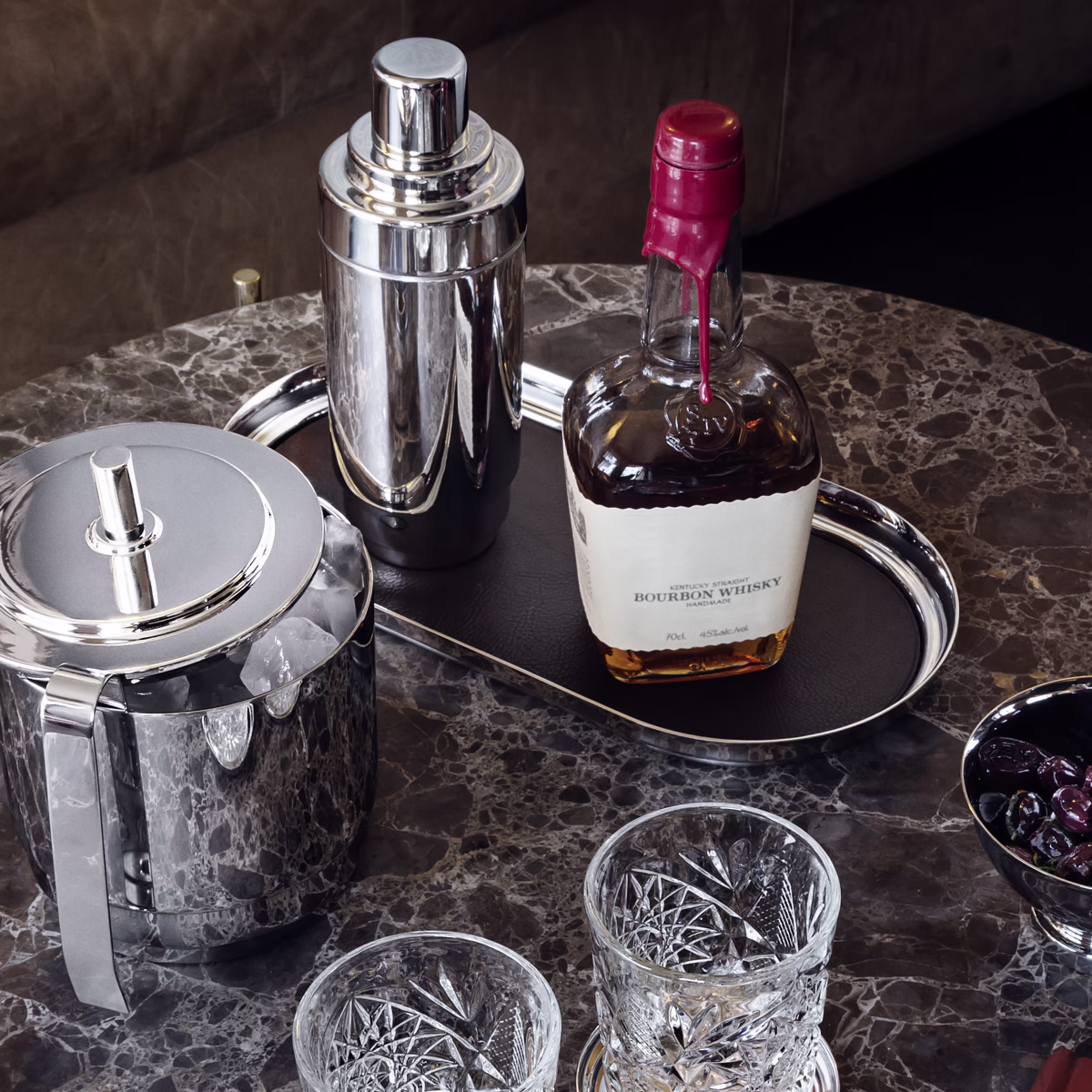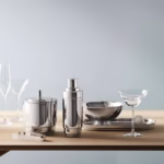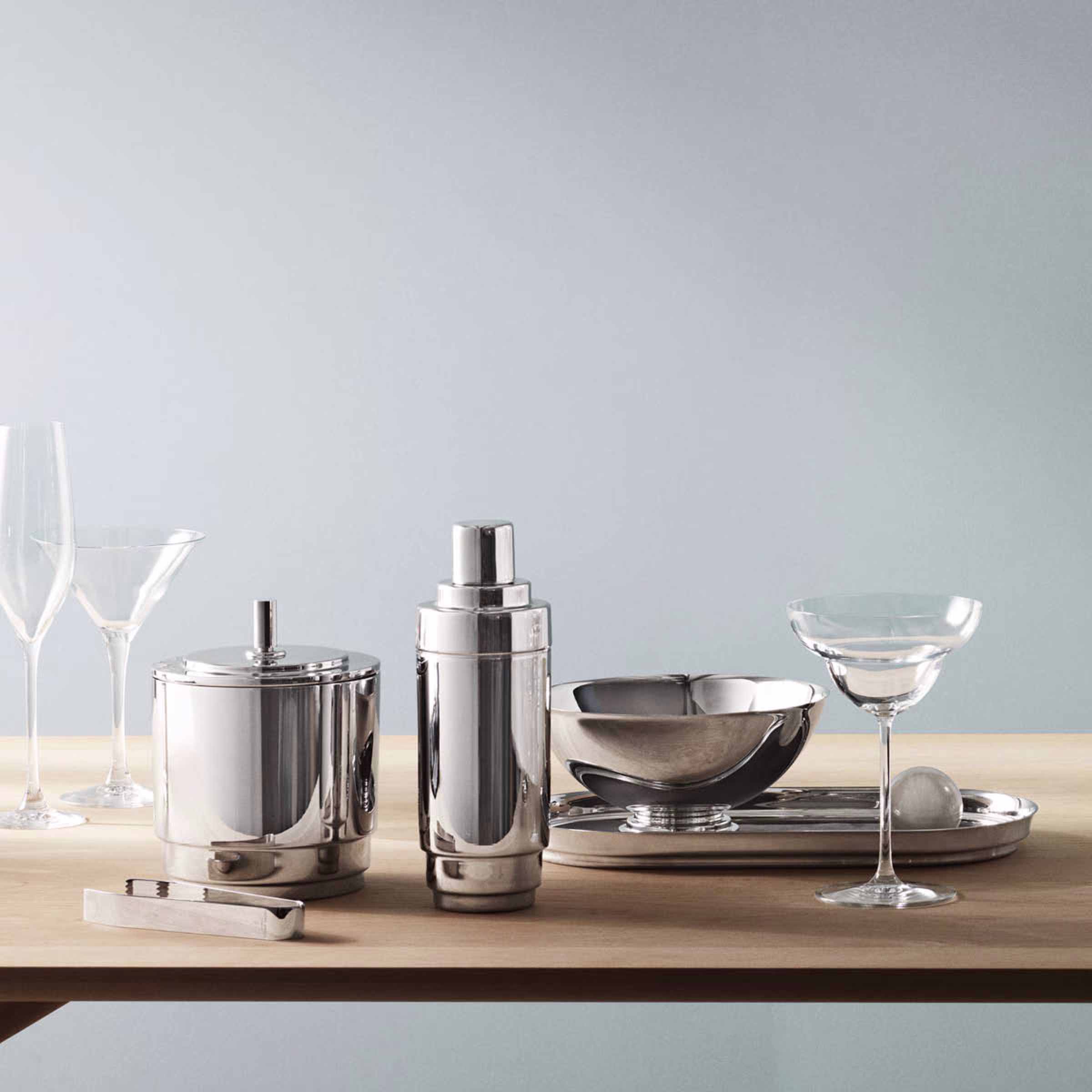 Georg Jensen, Manhattan barware koleksiyonunu geliştirirken ilham almak için Gatsby dönemine baktı. Sonuçlar geometrik ve zamansızdır ancak çöküş ve ihtişam duygusuna sahiptir.