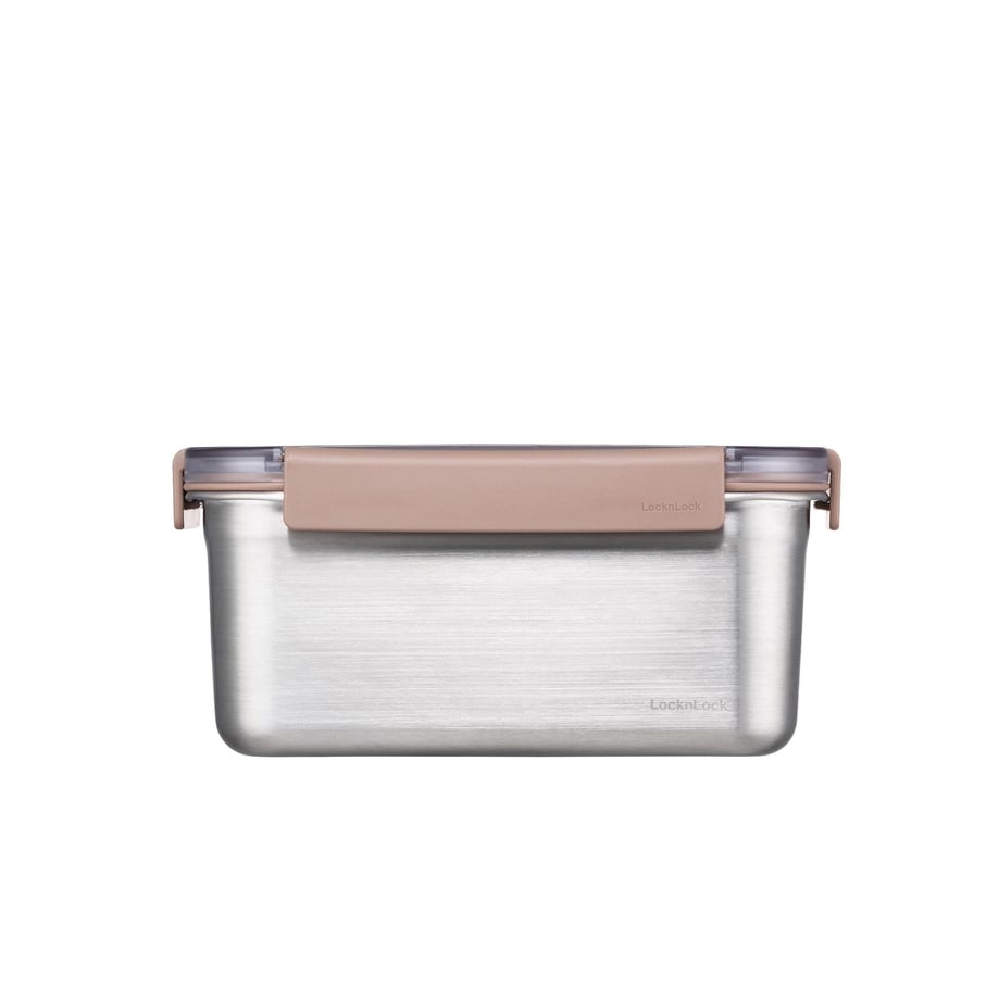 LocknLock Paslanmaz Çelik Fırın & Saklama Kabı Kare Kilitli 1.3 Lt ml – Kahverengi(LST605)