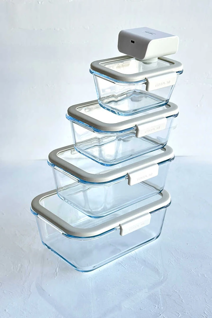 Neoflam Fika Glace Vakumlu Cam Saklama Kabı Seti Bej 5 Parça