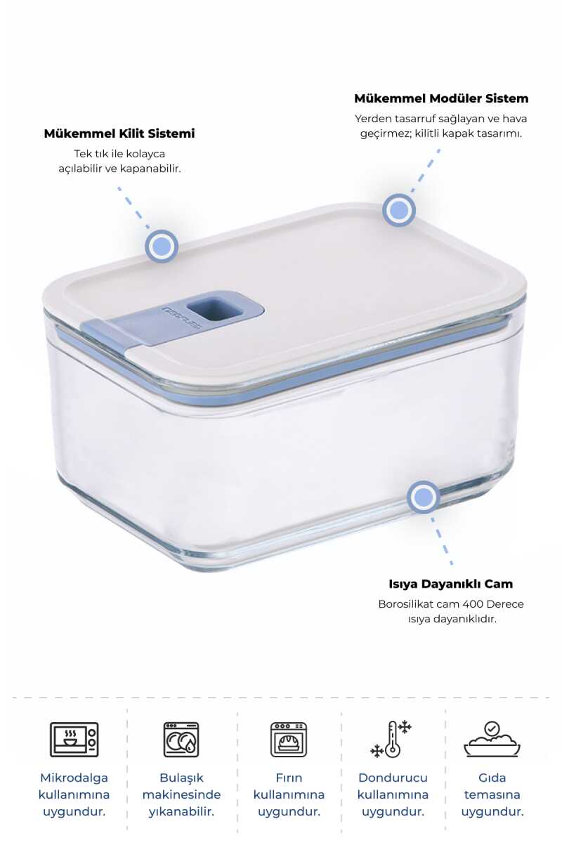 Mükemmel hava mührü ve koruması sağlayan tasarımı ile buzdolabından, derin dondurucuya kadar saklama imkanı sunarken, borosilikat malzemesinden üretilen gövdesi ile normal fırın ve mikrodalgada yiyeceklerinizi ısıtma imkanı sunar.