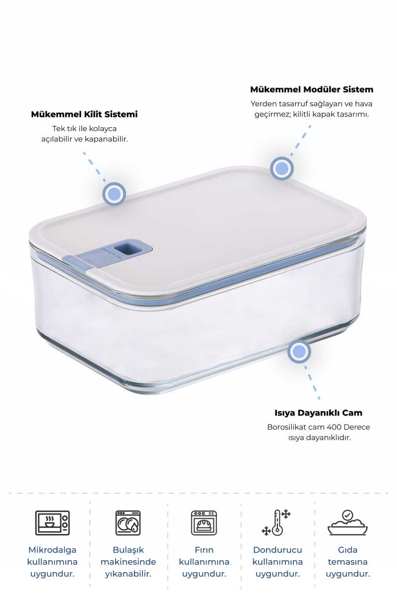 Mükemmel hava mührü ve koruması sağlayan tasarımı ile buzdolabından, derin dondurucuya kadar saklama imkanı sunarken, borosilikat malzemesinden üretilen gövdesi ile normal fırın ve mikrodalgada yiyeceklerinizi ısıtma imkanı sunar.