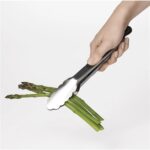 Yemek pişirme sürecinde malzeme ilave etmek, çevirmek ve tabağa aktarmak gibi her aşamada kullanacağınız OXO 9″ inch (22,85 cm) paslanmaz çelik maşa, katlanarak kompakt bir saklama çözümü sunuyor. Bulaşık makinasında yıkanabiliyor.