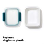 OXO Good Grips Prep & Go 3.3-Cup Container, yemek hazırlama, öğle yemeği veya yemek artıkları için yeni gideceğiniz yer olacak. Bu geceki çorbanın geri kalanını mı topluyorsun? Bu yardımcı olabilir. İki fırın tepsisi değerinde sebze hazırlayan yemek? Hepsini tutabilir. Hatta kaptaki her şeyi mikrodalgada pişirebilirsiniz ve serin tutan kulplar masaya veya çalışma masanıza kolayca taşımanızı sağlar. Yine de kapak en iyi kısımdır: Silikon contası ve iki kilitleme klipsi sayesinde sızdırmazdır; ve aradığınızı görmenize yardımcı olacak şeffaf bir pencereye sahiptir. Ve taban şık, seramik bir kap gibi görünse de, aslında tek kullanımlık plastiğe göre çok daha hafif, BPA içermeyen bir alternatiftir. Bulaşık makinesinde yıkanabilir.