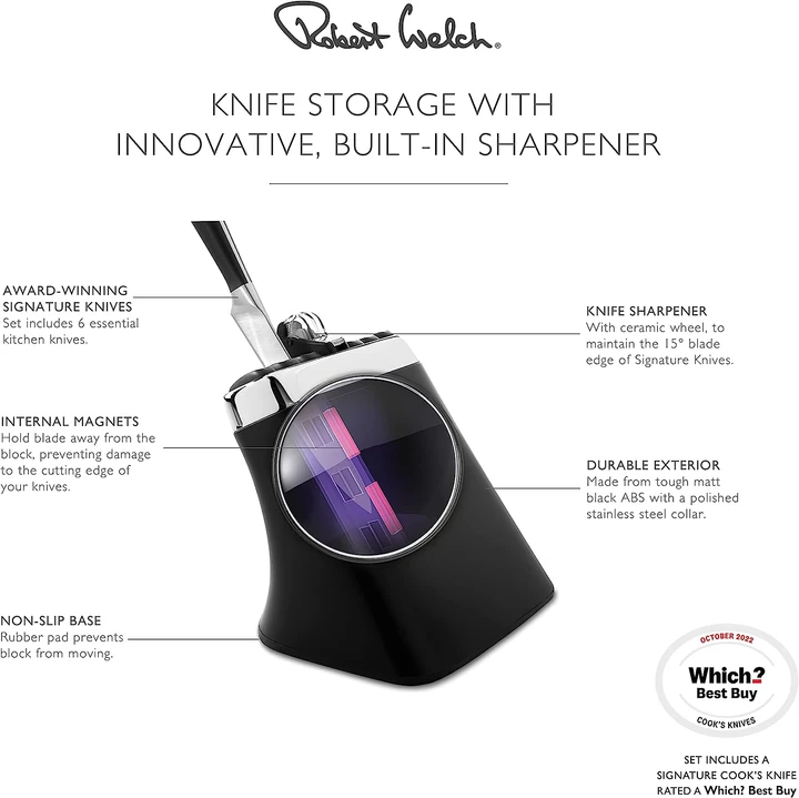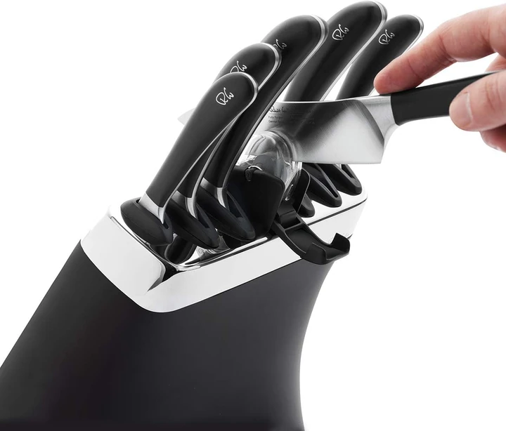 Entegre bıçak bileyicili, çok ödüllü, İngiliz tasarımı Signature bıçak bloğu seti, mutfak bıçaklarının saklanması için güzel tasarlanmış bir çözüm sunar. ABS blok, mutfak çalışma alanınızı düzenlerken bıçak kenarlarını koruyan basit ve işlevsel bir tasarıma sahiptir. Bu set 6 mutfak bıçağı ile birlikte gelir.Pratik olduğu kadar iyi biçimlendirilmiş, çok ödüllü, İngiliz tasarımı Signature bıçak bloğu, zahmetsiz insan etkileşimi düşünülerek tasarlanmıştır.