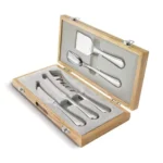 Sert Peynir Bıçağı (1), Çok Amaçlı Peynir Bıçağı (1), Yumuşak Peynir Bıçağı (1), Stilton Kepçe (1), Peynir Keski (1), Meşe Kutusu (1)