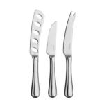Zamansız Radford Bright çatal bıçak takımı serisinden 3 parça peynir bıçağı seti.