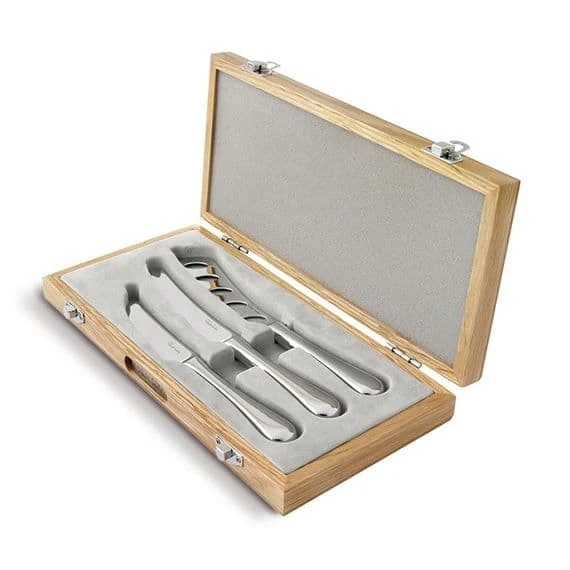 3 parça peynir seti şunları içerir: Sert Peynir Bıçağı, Çok Amaçlı Peynir Bıçağı, Yumuşak Peynir Bıçağı. Bir peynir aşığı için mükemmel bir hediye olan meşe sunum kutusunda teslim edilir!
