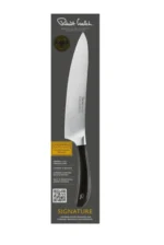 20 cm’lik aşçı bıçağı, doğrama ve sallanan kesme işlemleri için kavisli bir bıçağa sahip çok amaçlı bir mutfak bıçağıdır. Üstün keskinlik için elle uygulanan 15° kenar ve ergonomik DuPont™ sap ile yüksek kaliteli Alman paslanmaz çeliğinden tamamen dövülmüştür. Tüm Signature mutfak bıçakları hediye kutusundadır.Profesyonel şeflere danışılarak tasarlanan ödüllü Signature 20cm/8″ aşçı bıçağı, doğrama ve sallayarak kesme işlemleri için kavisli bir bıçağa sahip çok amaçlı bir mutfak bıçağıdır.