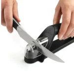 Ergonomik tasarımı kullanımda maksimum verim ve rahatlık sağlar. Elde tutulan bıçak bileyici sağ veya sol elle kullanılabilir ve kaymaz bir taban ile denge ve güvenlik için ağırlıklandırılmıştır. Değiştirilebilir seramik bileme çarkı, bıçakların, Signature mutfak bıçakları serisinin Japon tarzı 15° bıçak kenarı için optimum bileme açısında konumlandırılan bileme çarkı ile doğru şekilde hizalanmasını sağlayan açılı şeffaf plastik bir koruyucunun içine yerleştirilmiştir.