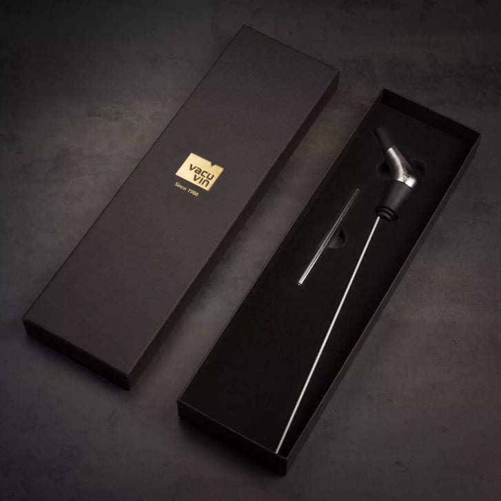 Şık tasarımı ve fonksiyonelliğiyle Vacu Vin Slow Wine Pourer, aynı zamanda lüks bir hediye kutusunda sunulmaktadır. Bu zarif ve pratik aksesuar, şarap ve yemek tutkunları için mükemmel bir hediye seçeneği oluşturur.