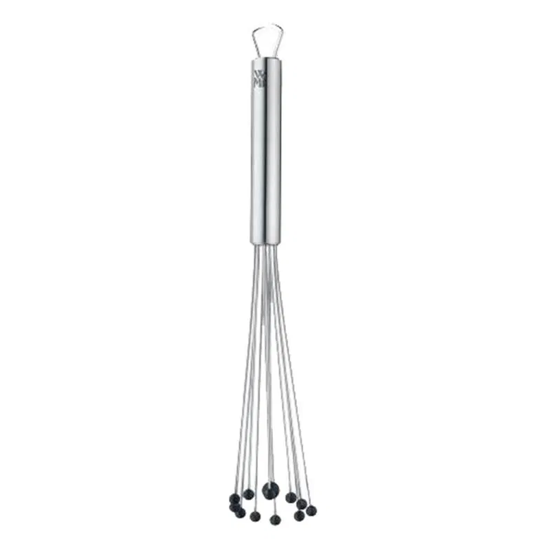 WMF Profi Plus Flexi çırpma telinin sırrı, esnek Cromargan® tellerin ucunda bulunan ve gıdayla temasa uygun olan küçük silikon toplarda yatar. Karıştırma sırasında topların yarattığı momentum hem gıdaların saniyeler içinde çırpılmasını sağlar, hem de malzemelerin tellerin arasına girmesini önler. Çırpma teli tencerenin veya karıştırma kabının her noktasına kolayca erişebildiğinden malzemeler kesinlikle yanmaz. Silikon malzeme, sesi de ciddi ölçüde azaltır. Flexi çırpma teli bulaşık makinesinde kolayca temizlenebilir ve pratik halkası sayesinde rahatça bir kancaya asılarak yerden tasarruf sağlar.