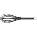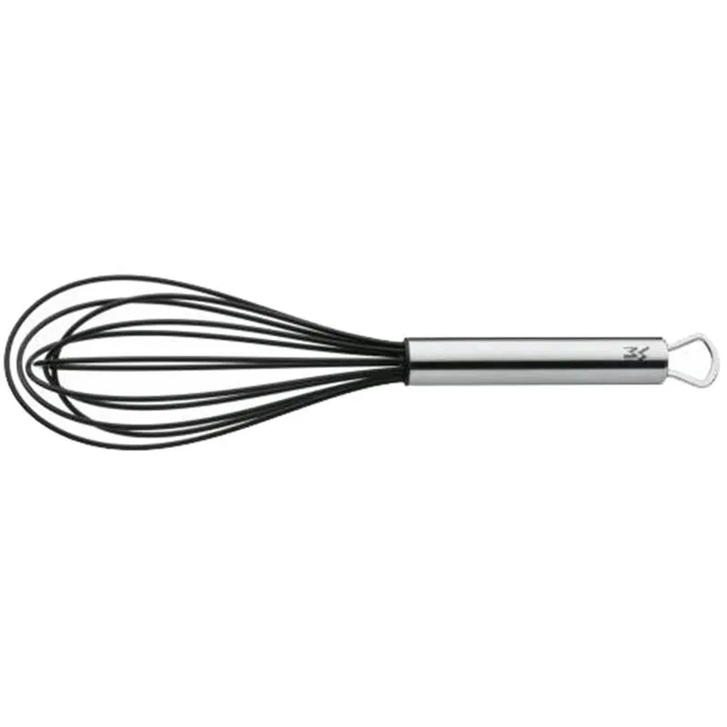Performansta rakip tanımayan bir mutfak gereci: 25 cm uzunluğundaki WMF Profi Plus silikon çırpma teliyle krema ve tatlılar için gerekli malzemeleri çabucak karıştırabilir, leziz marinatlara baharat ve yağların nüfuz etmesini sağlayabilir, nefis soslar için kolayca ve hızla tereyağı eritebilir, yumurta ve kremaları köpürünceye kadar çırpabilirsiniz. Akıllı tasarımıyla tencere ve kapların en uzak noktalarına kolayca erişerek ocakta kullanım sırasında malzemelerin yanmasını önler. Çırpma teli bulaşık makinesinde kolayca temizlenebilir ve pratik halkası sayesinde rahatça bir kancaya asılarak yerden tasarruf sağlar.