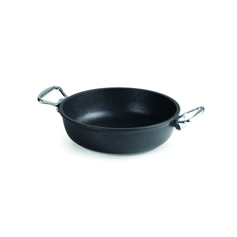 B) Değişken Kalınlık Yapısı: Yan duvarlar 3 mm, taban ise 10 mm kalınlığındadır. Sert taban ve kalın üst yapı, maksimum enerji emilimi ve eşit ısı dağılımı için idealdir. Isı, orta-düşük sıcaklıklarda bile minimum alevle, dağılmadan uzun süre korunur: ENERJİ TASARRUFU. Isı yiyeceğe eşit şekilde aktarılır; bu durum yanmaları önlediği gibi, 260°C üzerindeki sıcaklıklarda bozulmaya başlayan yapışmaz kaplamanın özelliklerini koruması açısından da kritiktir. Kenarlar, kazara oluşabilecek darbelere veya ısıya bağlı deformasyonlara karşı yüksek kalınlıktadır.