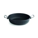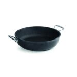 • B) Optimize Edilmiş Kalınlık ve Verimlilik: Yan duvarlarda 3 mm, tabanda ise 10 mm kalınlık uygulanmıştır. Sert taban ve kalın üst yapı, maksimum enerji emilimi ve düşük-orta sıcaklıklarda bile uzun süre korunan eşit ısı depolaması için idealdir: ENERJİ TASARRUFU. Isı gıdaya eşit şekilde aktarılır; bu durum yanmaları önlediği gibi, 260°C üzerindeki sıcaklıklarda bozulmaya başlayan yapışmaz kaplamanın ömrünü korumak için de hayati önem taşır. Kenarlar, darbe veya ısı kaynaklı deformasyonlara karşı yüksek dayanıklılıktadır.