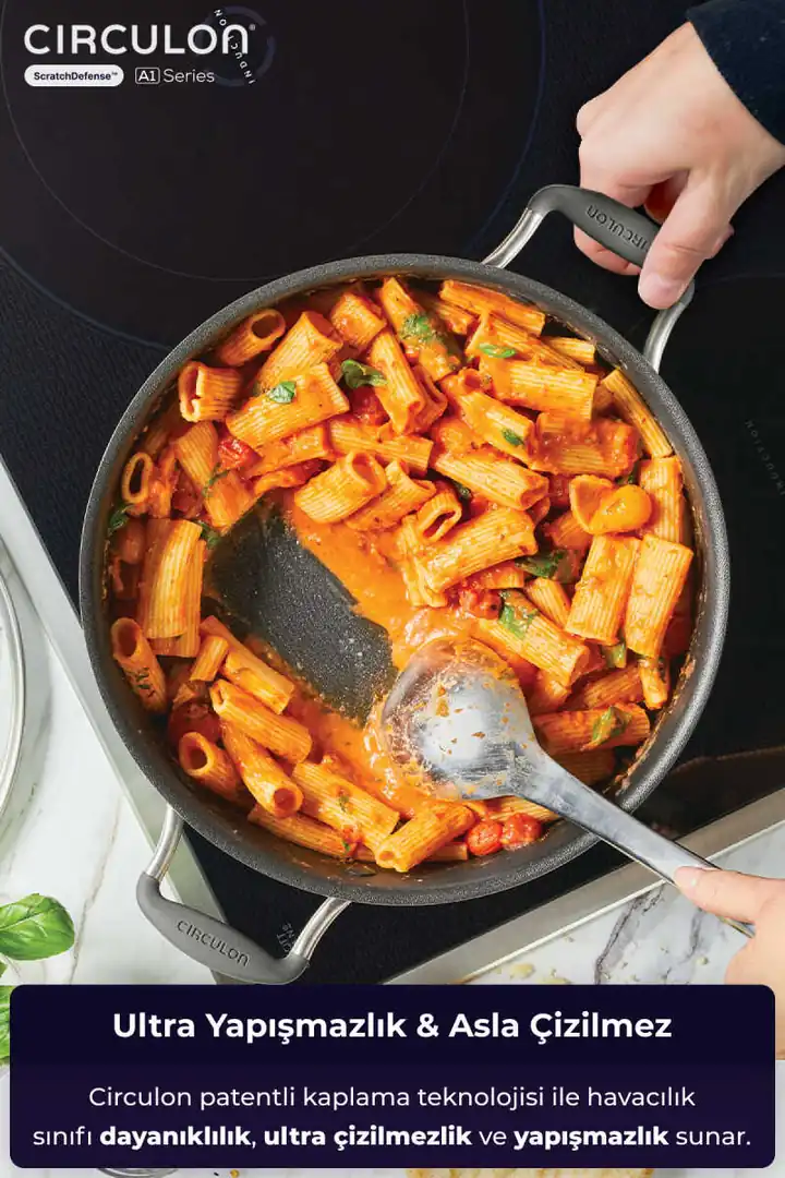 Kalın ve 3x katlı yapışmaz kaplamalı pişirme kaplarının mucitlerinden Circulon, ScratchDefense Teknolojisine sahip A1 Serisi ile mutfağınıza yenilik getiriyor.