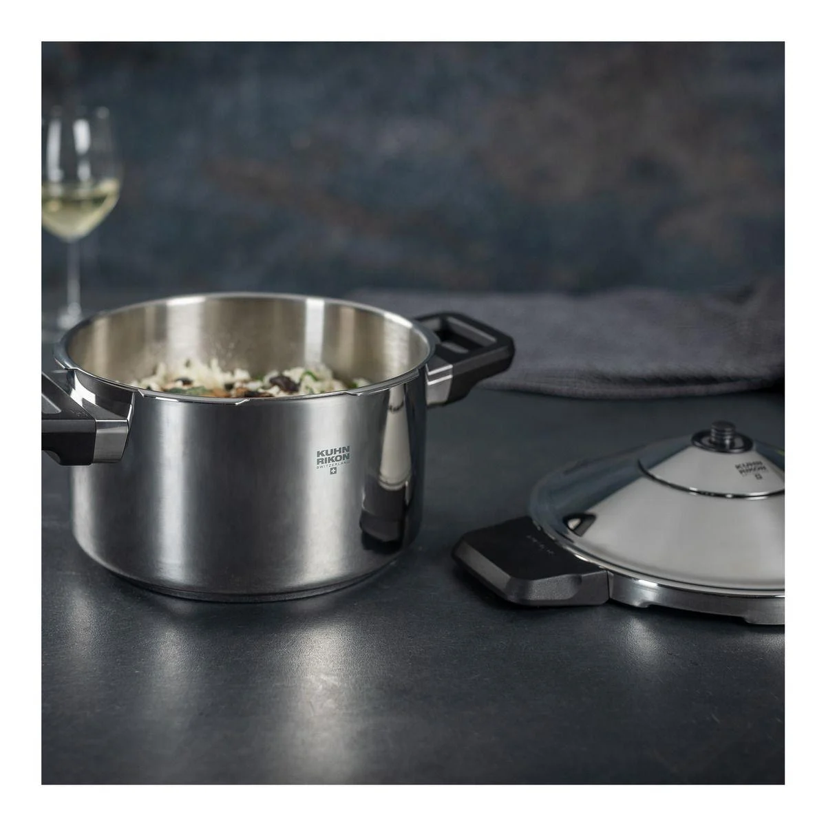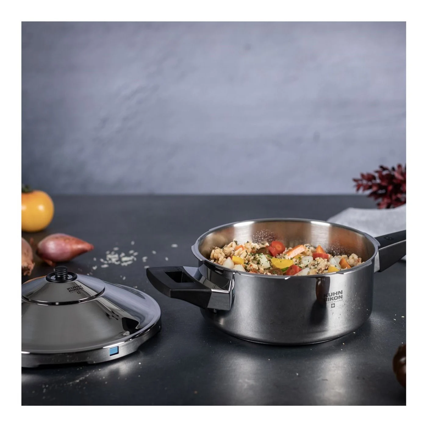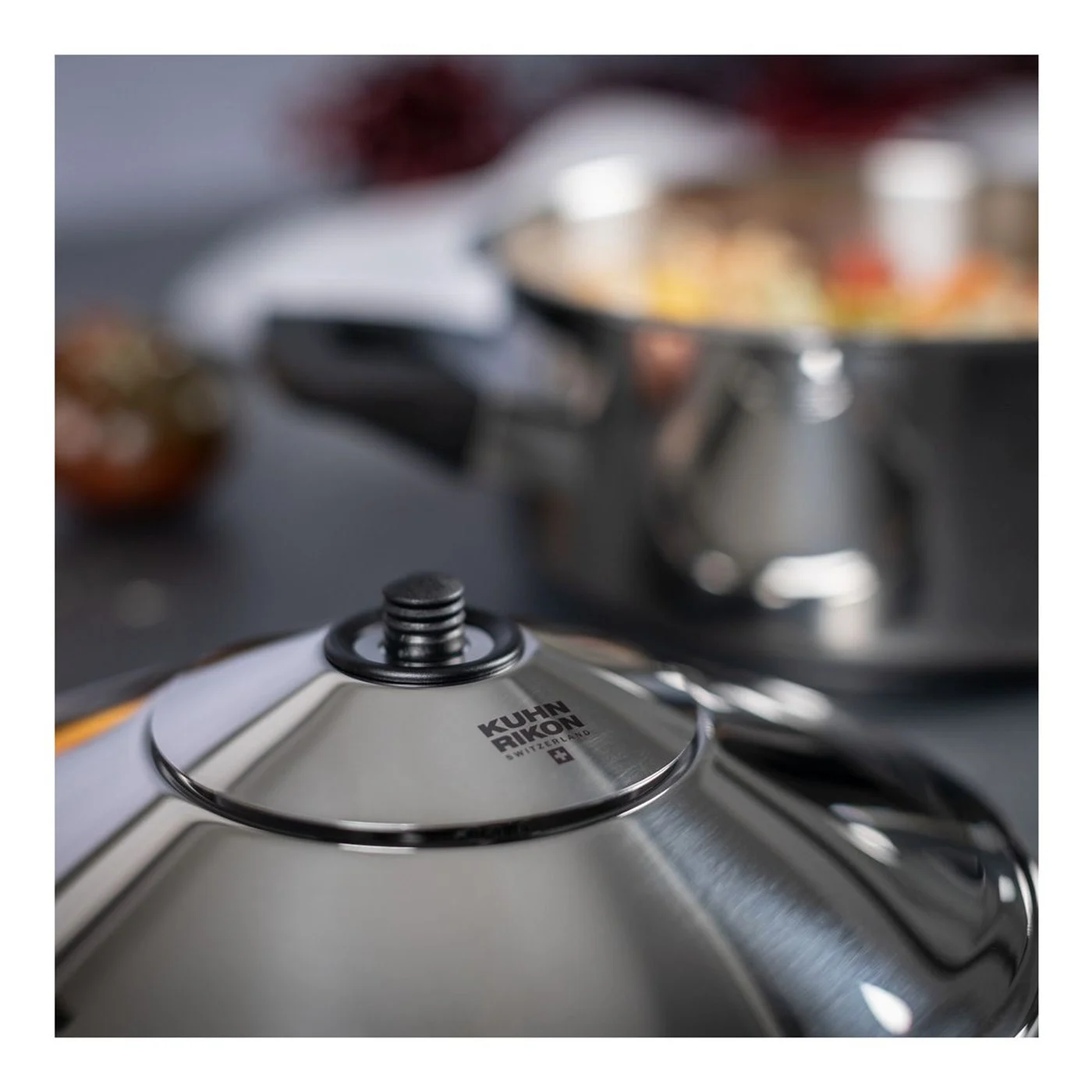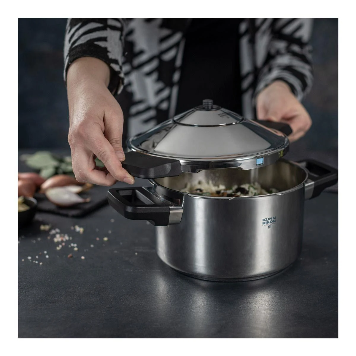 • DUROMATIC® düdüklü tencere yüksek basınç güvenliği için4 farklı güvenlik sistemi ile donatılmıştır. – İki seviyeli emniyet valfi – Bağımsız Çalışan yüksek basınç valfi. – Lastik kapak contasında, yüksek basınç tahliye özelliği- Tam otomatik kapak kilitleme sistemi, düdüklü tencerenin basınç düşmeden kapağının açılmasını önler. Valf ve basınç göstergesikapağın üst konumunda merkezi olarak konumlandırılmıştır. Bu, gıda parçacıklarının valfe ulaşma ve tıkanma riskini azaltır.• DUROMATIC® valf kapatma sistemi, yüksek basınçlara dayanıklıdır. • Hızlı ve eşit bir şekilde ısınan SUPERTHERMIC® Sandiviç tabanı bulunmaktadır. • DUROMATIC® ; diğer düdüklü tencerelere göre daha az su ile pişirme sağlar ve pişirme sırasında daha az buhar kaybeder. Sadelik ve kullanım kolaylığı temel prensiptir. Bu nedenle: yemek pişirmek kolaydır. DUROMATIC®‘i temizlemek kolay ve arıza riski düşüktür. • %70’e varan enerji tasarrufu sağlar. • Pişirme Süresini %60 azaltır. • Vitaminleri, gıdaların doğal renklerini, yemeklerin lezzetini korur. • DUROMATIC® en saygın uluslararası standart kuruluşları tarafından onaylıdır: TÜV, GS, UL-Approval, MITI • KUHN RIKON, ISO 9001 Standratlarına sahiptir. • 18/10 Yüksek kalite paslanmaz çelikten üretilmiştir. • Üretim yeri İSVİÇRE’dir. |