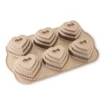NordicWare’in popüler Katmanlı Kalp Bundt Kek Kalıbı’nın minik versiyonuyla tanışın! Bu sevimli kalıp, altı adet minik kalp şeklindeki kek haznesine sahip. Sevdiklerinize sunacağınız en tatlı sürprizlerden biri olacak bu kalıp, hem görsel hem de lezzet olarak keyif verecek.