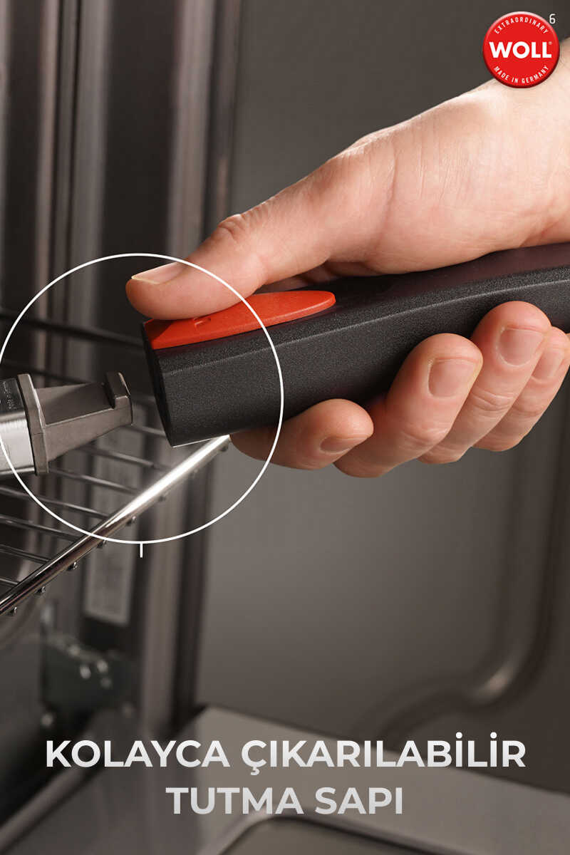 Woll titanyum kaplı tava 24 CM NOWO’nun titanyum sert zemin kaplaması son derece kaliteli, sağlam ve uzun ömürlüdür. Yani tam kullanımda pişirebilir ve kızartabilirsiniz ve tencere konusunda endişelenmenize gerek kalmaz Çok yönlü. Benzersiz. Nowo serimizin ürünlerinde ısı eşit şekilde dağıtılır ve güçlendirilmiş duvarlar ve zemin yardımıyla daha uzun süre depolanır. Böylece sıcaklığı daha erken düşürebilirsiniz. Ayrıca yemeğiniz tavada daha uzun süre sıcak kalır ek olarak mükemmel. ÜSTÜN YAPIŞMAZ KAPLAMA Sağlam ve dayanıklı titanyum sert taban contamız kolay yıkama ve neredeyse yağsız pişirme sağlarSAPLI. VE SAPSIZ. TÜV & GS onaylı çıkarılabilir sap ile tava fırına veya bulaşık makinesine kolayca sığar ve daha iyi saklanması ve istiflenmesi kolaydır Et, balık, sebze, yumurta yemekleri ve daha fazlası kesinlikle işe yarayacaktırFırına Dayanıklı Pişirme çok yönlülüğü için bu tava 260 °C’ye kadar fırında kulpsuz kullanılabilir.Verimli termal tabanımız ultra hızlı ve eşit ısı transferi sağlar. Sağlam dökme demir gövde sıcaklığını özellikle uzun süre korur, böylece soba erken saatte tekrar kapatılabilir ve enerji tasarrufu sağlanabilir OCAK ÇEŞİTLERİ Bu tava gazlı, elektrikli, cam seramik ocaklar ve indüksiyonlu ocaklar için uygundur Almanya’da üretilmiştir. El dökümü alüminyum ürünlerimiz Saarland’da üretilmektedir.