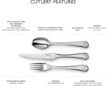 - SET İÇERİĞİ – 12 x Ammonite Bright Sofra Bıçağı, 12 x Yemek Çatalı, 12 x Çorba Kaşığı, 12 x Yan Bıçak, 12 x Yan Çatal, 12 x Tatlı Kaşığı ve 12 x İngiliz Çay Kaşığı.