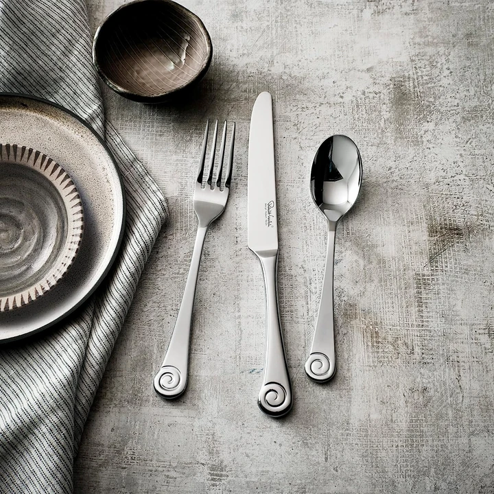 - ZAMANSIZ STİL – Ammonite Bright çatal bıçak takımı 1990’ların başında tasarlandı ve Robert Welch tarafından tasarlanan güncel çatal bıçak takımı serilerinin bir koleksiyonuna ait. Fosillerin doğal sarmallarından ilham alan, nautilaus kabuğu şeklindeki Ammonite çatal bıçak takımı, her sofraya özgün bir ektir.