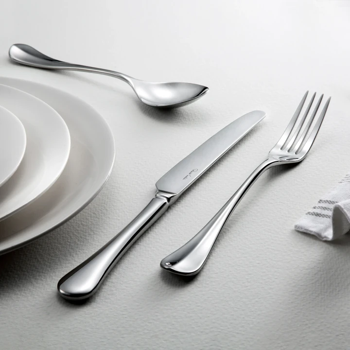 Bu sadeleştirilmiş doğrusal tasarım, organik formlarla tanınan Robert Welch Designs için alışılmadık bir hareket. Baquette , çağdaş masaya kesinlikle uygun, telaşlı detayları olmayan sade, minimalist bir modeldir.