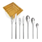 Bud çatal bıçak takımının ince sap tasarımı, zarif bir şekilde avucunuzun içine kıvrılarak tutmayı kolaylaştırır. Kaşık ve çatal yapımında en yüksek kalite 18/10 paslanmaz çelik kullanılmaktadır. Bıçak ağızlarında mümkün olan en iyi kesme kenarını oluşturmak için özel olarak sertleştirilmiş paslanmaz çelik bir bıçak kullanılır. Tüm Bud çatal bıçak takımları bulaşık makinesinde yıkanabilir ve ayna kaplamalı olarak mevcuttur, ömür boyu garantilidir ve bulaşık makinesinde kullanım için güvenlidir.