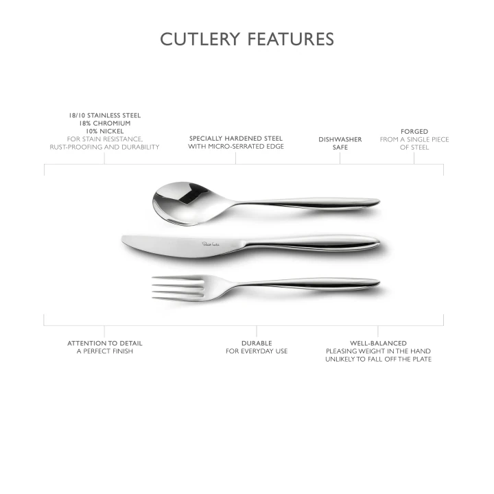 Tablo Bıçk (12), Masa Fork (12), Eksi Kaşık (12), Yan Bıçak (12), Yan çatma (12), Tatlı Kaşık (12), İngiliz Çay kaşığı (12)