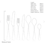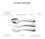 Sofra Bıçağı (12), Yemek Çatalı (12), Çorba Kaşığı (12), Yan Bıçak (12), Yan Çatal (12), Tatlı Kaşığı (12),  Çay Kaşığı (12)