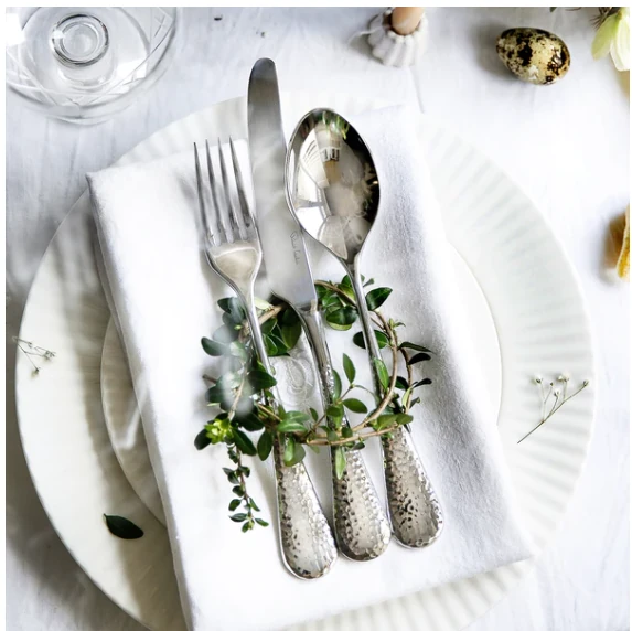 Şık bir şekilde süslenmiş Honeybourne Bright Textured çatal bıçak takımı serisinden 84 parça, hediye kutulu çatal bıçak seti, 12 masa düzeninden oluşur. En iyi 18/10 paslanmaz çelikten yapılmıştır ve ayna cilalı bir kaplamaya sahiptir