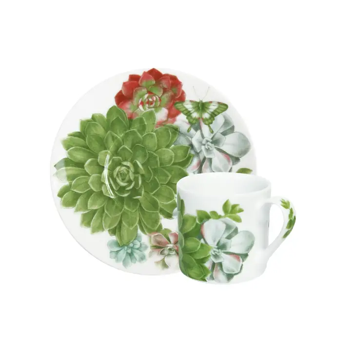 DESERT ROSE koleksiyonu; değerlilik, özgünlük ve koruma temalarını TAITÙ’nun ikonik stiliyle kutluyor. Sukulent bitkilerini, yukarıdan bakıldığında zengin tonlu taç yapraklarına benzeyen pastel renkli “güllere” dönüştüren bu tasarım, kahve keyfinize sofistike bir estetik katar. Toz pembeden açık maviye ve koyu kırmızıya uzanan armonik renk paleti, doğanın kusursuz geometrik desenlerini yıl boyu kullanım için ideal bir şıklıkla sunar.