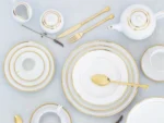 Uzak Doğu’nun zarif estetik anlayışından ilham alarak tasarlanmış, modern çizgilerle yeniden yorumlanmış etkileyici bir koleksiyondur. İnce detaylarla zenginleştirilmiş tasarımı ve parlak altın dokunuşları, her sofraya rafine bir ışıltı katıyor. Shangai OB, adını taşıdığı kentin kültürel zenginliğini ve modern dinamizmini yansıtır. Uzak Doğu’ya özgü desen anlayışı, porselenin zarif yüzeyinde çağdaş bir yorumla buluşur. Koleksiyonun en dikkat çekici yönü, ince altın süslemeleridir. Sofralarınıza göz alıcı bir parlaklık ve şıklık katan bu detaylar, yemek takımına lüks bir dokunuş kazandırır. Doğu’nun dinginliği ile Batı’nın modern çizgilerini buluşturan Shangai OB yemek takımı, her öğünü bir deneyime dönüştürür. Şıklığı, zarafeti ve güçlü tasarım diliyle fark yaratmak isteyenler için ideal bir seçimdir.