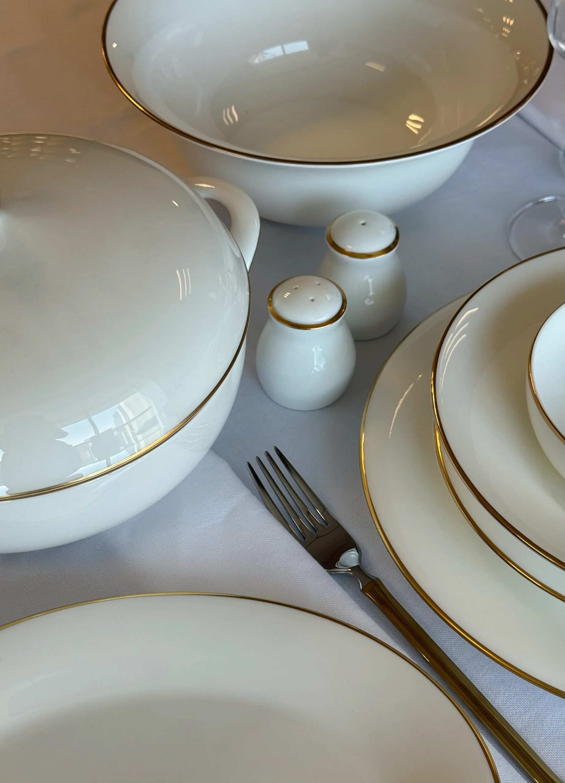 Göz alıcı zarafeti ve kusursuz işçiliğiyle dikkat çeken Prouna Pure Gold, lüks sofraların vazgeçilmezi olmaya aday. 24 ayar saf altın detaylarla bezenmiş bu özel koleksiyon, sade bir ihtişam ve yüksek estetik anlayışıyla tasarlandı. Pure Gold serisi, modern çizgileri klasik altın ışıltısıyla buluşturan rafine bir koleksiyondur. İnce beyaz porselen üzerine uygulanan yalın ama etkileyici altın çizgiler, sofistike bir denge yaratır. Abartıdan uzak lüksü temsil eden bu tasarım, hem günlük şıklık hem de özel davet sofraları için idealdir. Altın detaylar, sadece dekoratif değil; aynı zamanda seçkin bir yaşam tarzının yansımasıdır. Bu koleksiyon, yüksek kaliteli porselenden üretilmiş olup, her bir parça el işçiliğiyle uygulanmış 24 ayar altın detaylar taşır. Prouna’nın uluslararası standartlara sahip üretim teknolojisi sayesinde hem estetik hem de dayanıklılık açısından üst düzey bir deneyim sunar. Prouna Pure Gold, zarif detaylarla sade şıklığı kusursuzca buluşturan, prestijli bir yemek takımıdır. Klasik ve modern çizgilerin dengelendiği bu koleksiyon, yaşam alanınıza seçkin bir dokunuş katar.