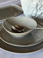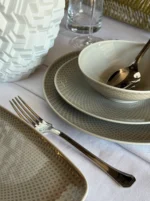 Birlikte yemek yemek, iyi vakit geçirmek ve hayatı kutlamak – Junto tasarımı, dünyanın dört bir yanından insanları ve onların lezzetli yemek sevgisini yenilikçi ve eğlenceli bir şekilde bir araya getiriyor. İnce porselen, gösterişli seramikler ve sıcak ahşabın zarif birleşimi, her türlü mutfak için her türlü kombinasyonu mümkün kılıyor. İnce porselen, zarif bir elmas kabartmaya sahip. İnce porselenle uyumlu bir kontrast oluşturmak için koleksiyon, ana parçaları özel reaktif bir sırla kaplanmış canlı, toprak tonlarında seramikler olarak da sunuyor.