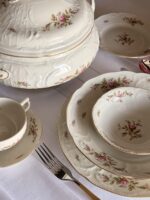 Narin yaprak ve çiçek filizleriyle iç içe geçmiş kafes işi. Sanssouci porselen servis takımı son derece zarif bir görünüme sahip. Sanssouci Sarayı’nın gösterişli sıvalı tavanlarından ilham alan servis takımı, ilk olarak 1920’lerde sunuldu. Büyük Friedrich’in Potsdam’daki yazlık evi için sipariş ettiği gösterişli bir sofra takımı koleksiyonu, tasarıma ilham kaynağı oldu. Servis takımı o kadar popüler oldu ki, birçok porselen üreticisi tarafından taklit edildi. Ancak, kraliyet porselenini orijinaline sadık bir formda üretme lisansını yalnızca Rosenthal almayı başardı.